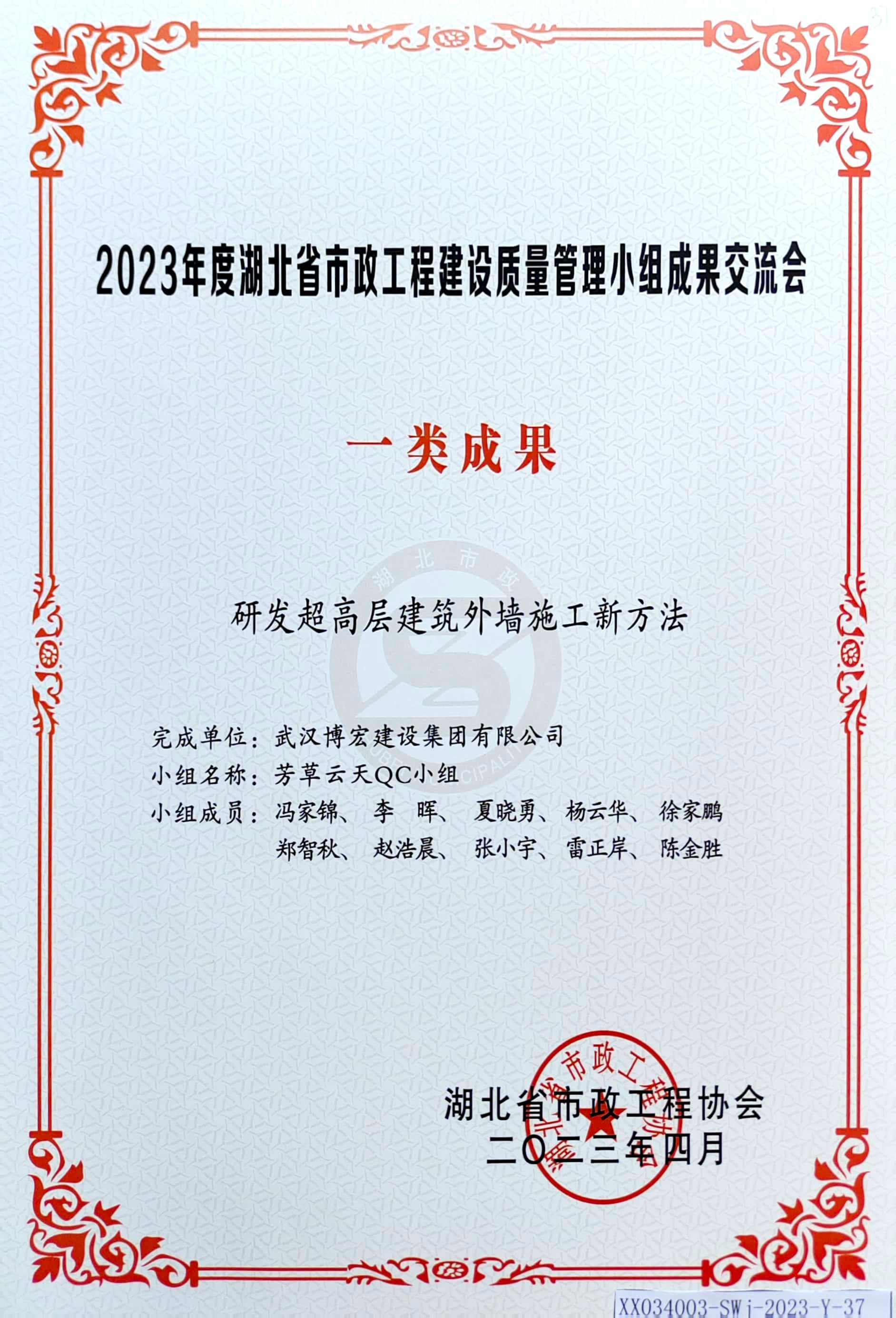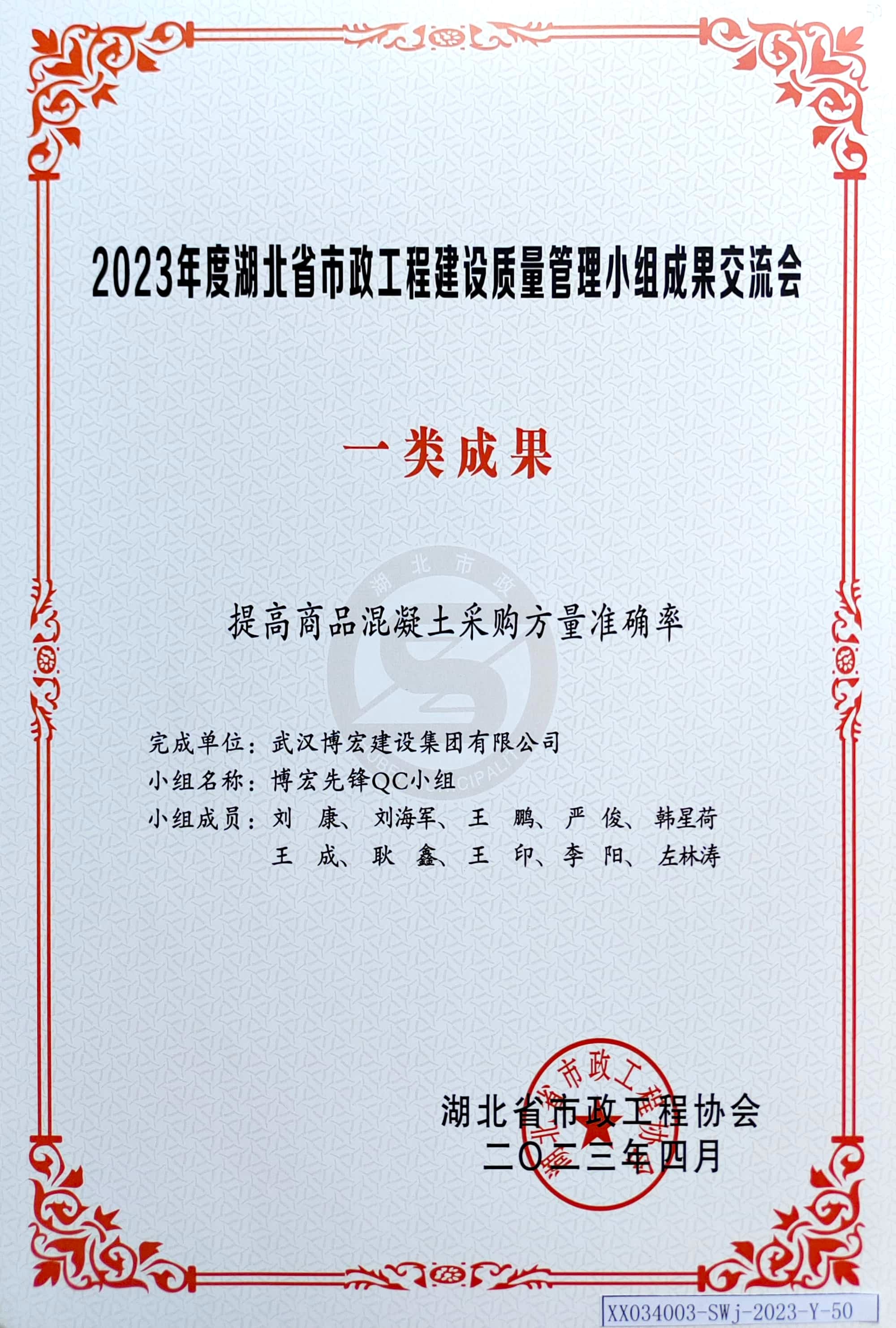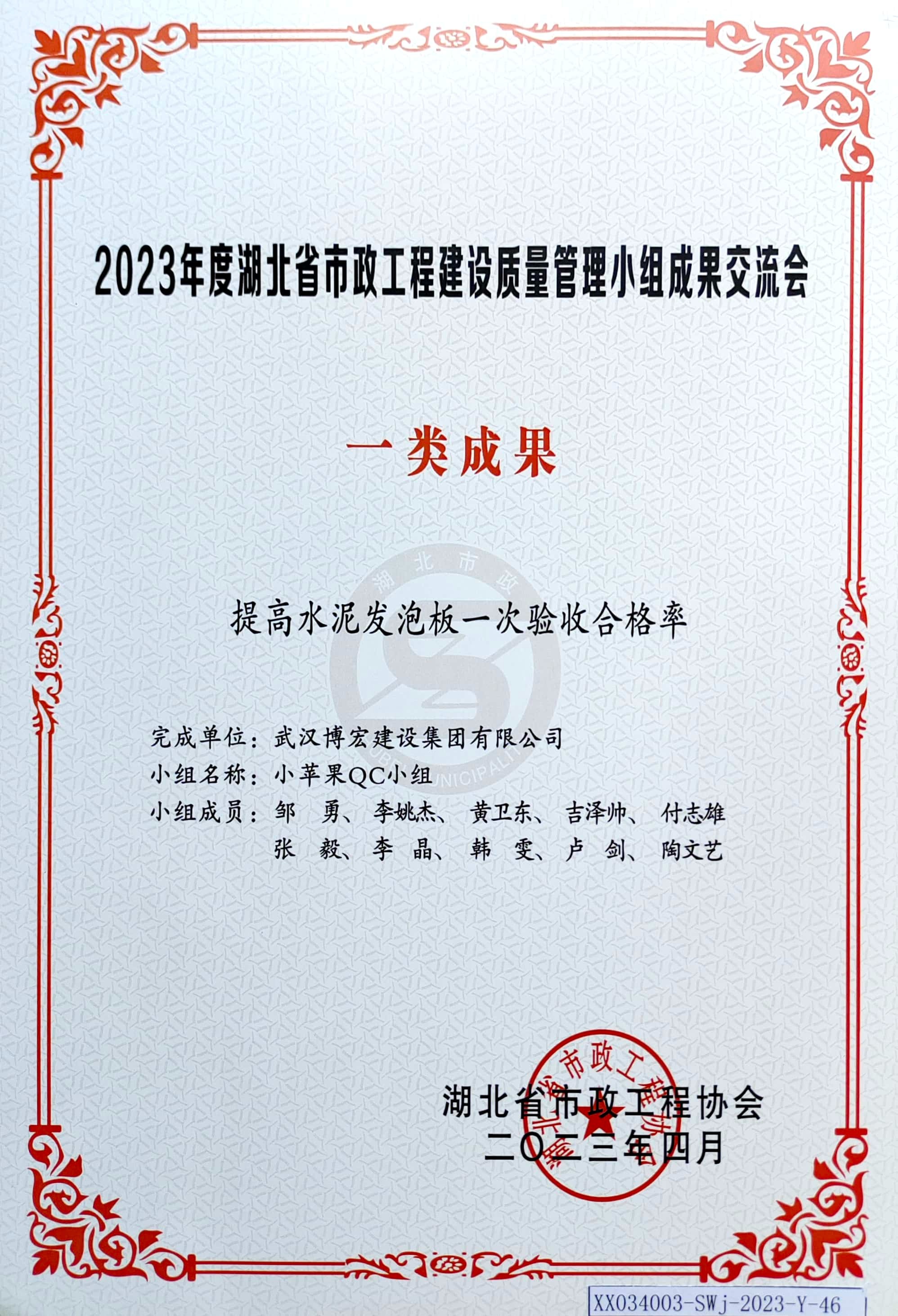 2023年度湖北省市政工程建設質量管理小組成果交流會 一類成果
