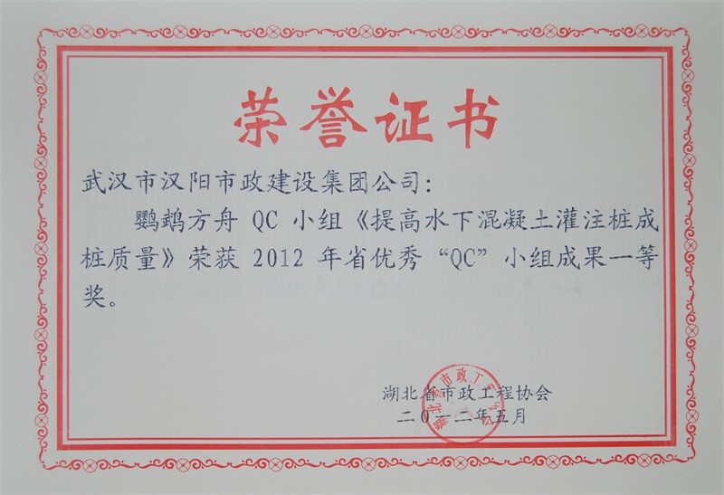 2012年度全國市政工程建設(shè)先進質(zhì)量管理小組