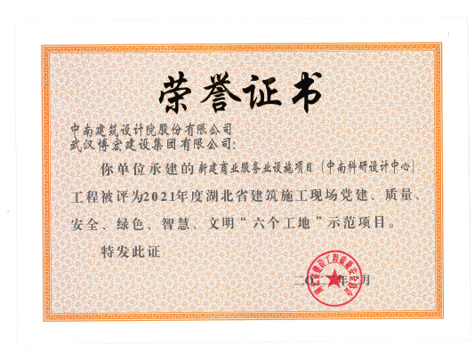 2021年度湖北省建設施工現(xiàn)場黨建、質(zhì)量、安全、綠色、智慧、文明“六個工地”示范項目