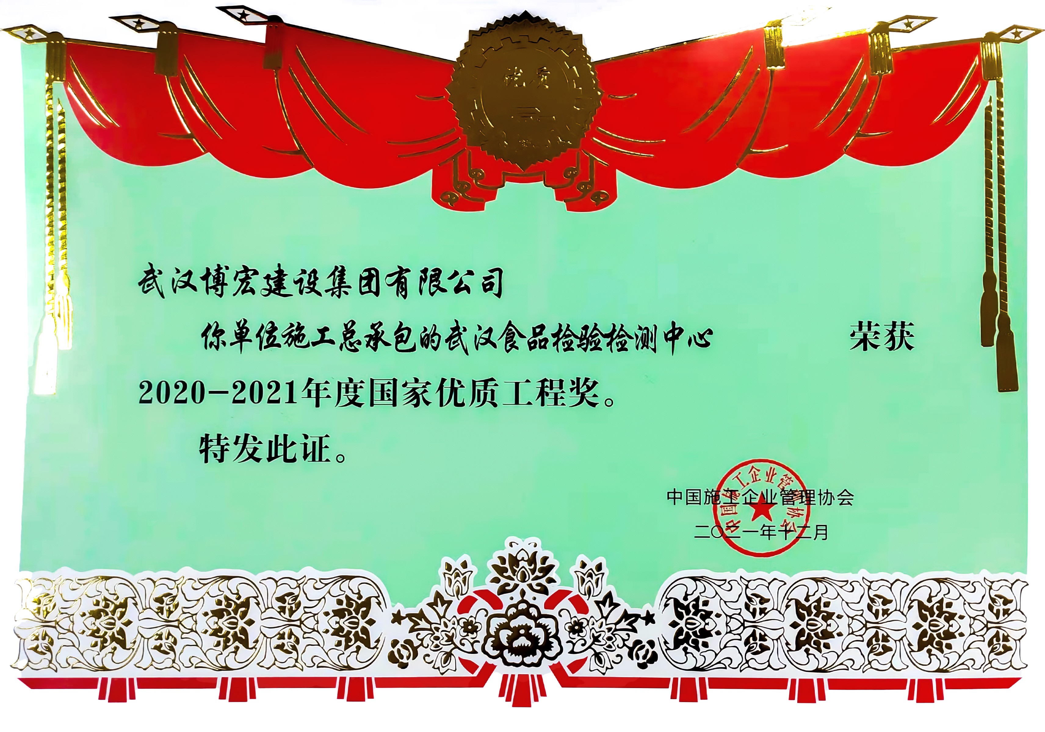 2020-2021年度國家優(yōu)質(zhì)工程獎-武漢食品檢驗檢測中心