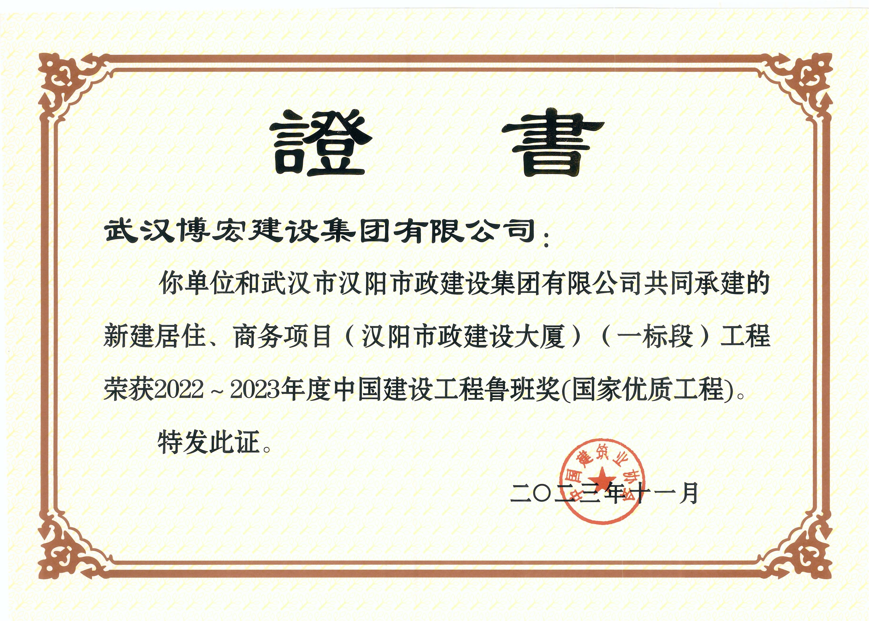 2022-2023年度中國建設工程魯班獎-新建居住、商務項目(漢陽市政建設大廈)(一標段)