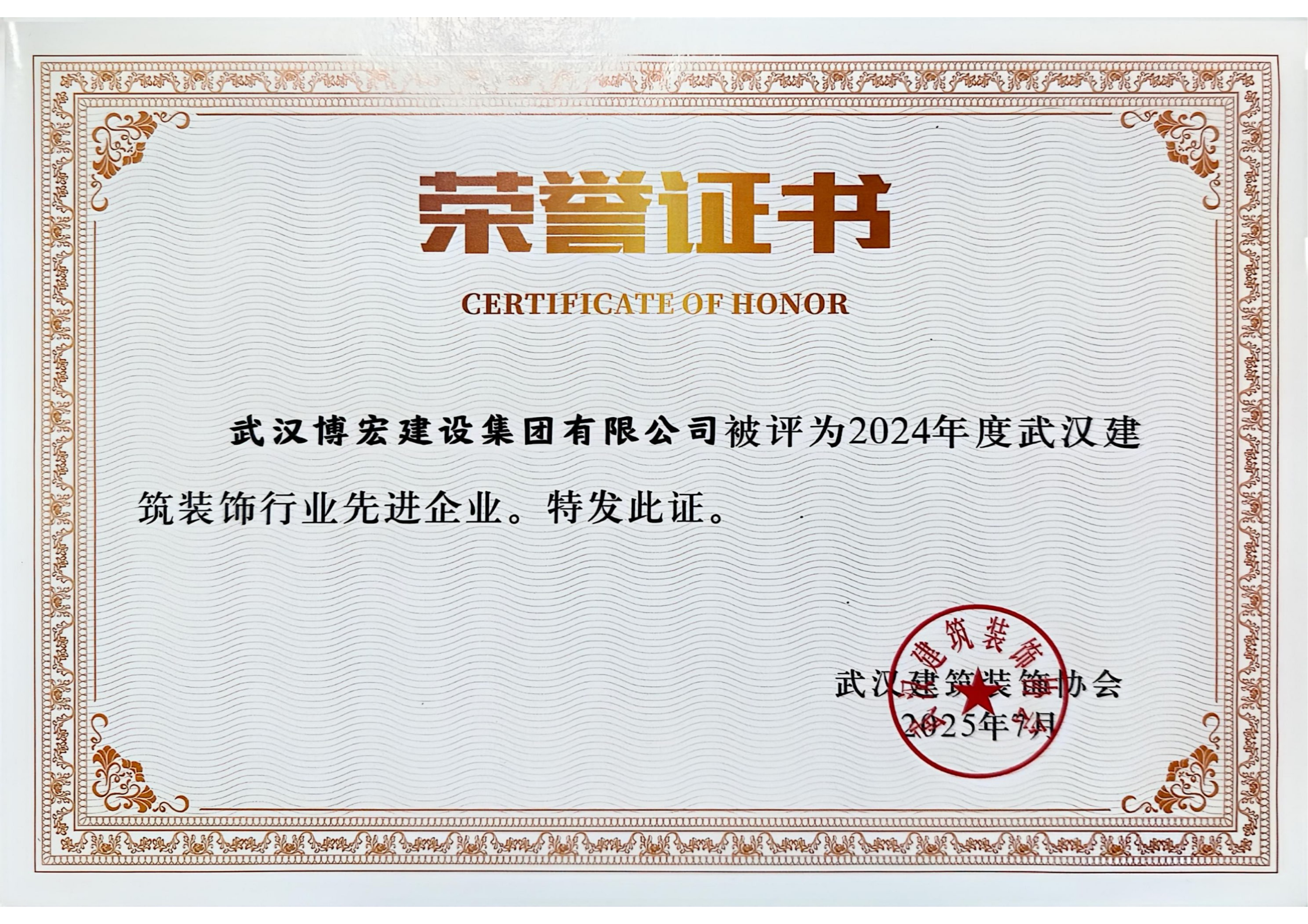 2024年度武漢建筑裝飾行業(yè)先進(jìn)企業(yè)
