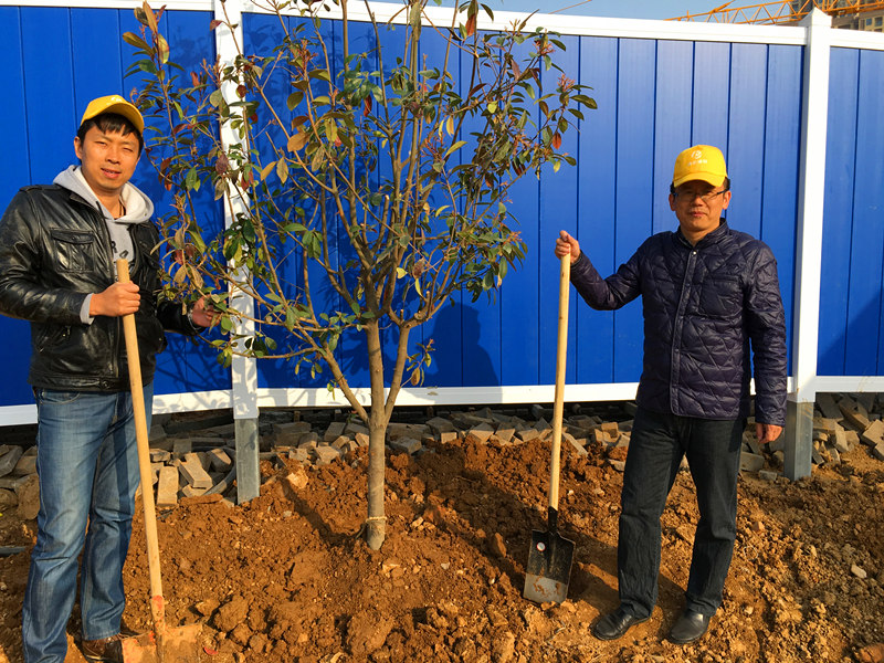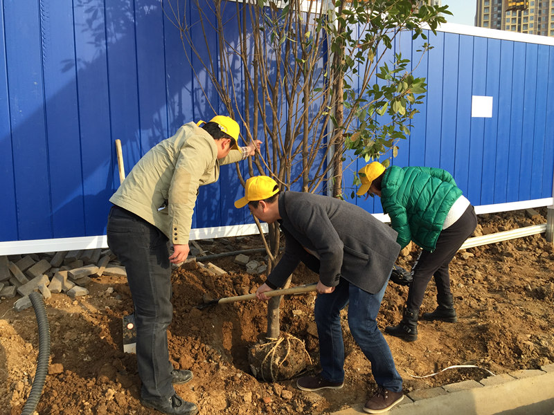 早春時(shí)節(jié),寒意猶在,但擋不住博宏建設(shè)志愿者“共建綠色家園,營造優(yōu)美環(huán)境”的熱情。3月12日上午,博宏建設(shè)志愿者一行40余人,在公司黨支部書記的帶隊(duì)下,扛著鐵鍬,前往正在實(shí)施湖泊整治的墨水湖邊。按照事先準(zhǔn)備的種植規(guī)范,志愿者們短短一上午便完成20余棵紅葉石楠、30余棵水杉和一筐麥冬、鳶尾花的種植任務(wù)。