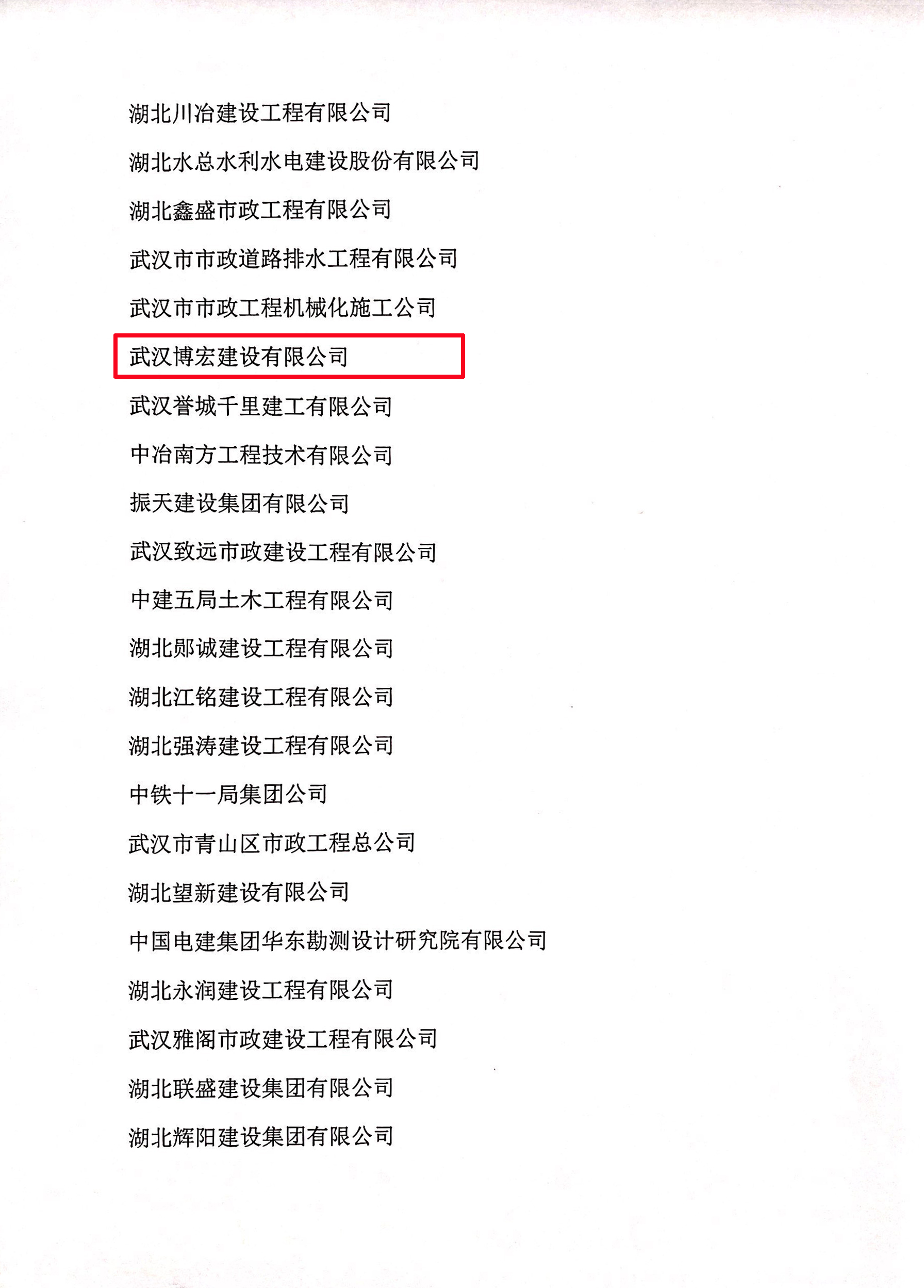 6月2日,湖北省市政行業(yè)協(xié)會發(fā)文表彰,授予博宏建設(shè)“湖北省市政行業(yè)抗擊疫情突出貢獻(xiàn)單位”榮譽稱號。