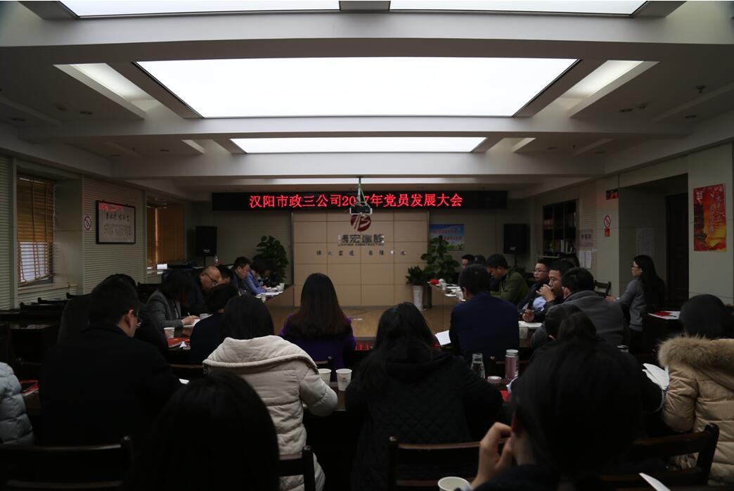 2017年12月23日,漢陽市政三公司支部全體黨員在公司大會議室召開黨員發(fā)展及轉(zhuǎn)正大會,大會同意郭文婷、劉海軍、閔慧子三名同志轉(zhuǎn)為中共正式黨員,接收向濤、紀成成兩名同志為中共預(yù)備黨員。大會由支部副書記郭一清主持。
