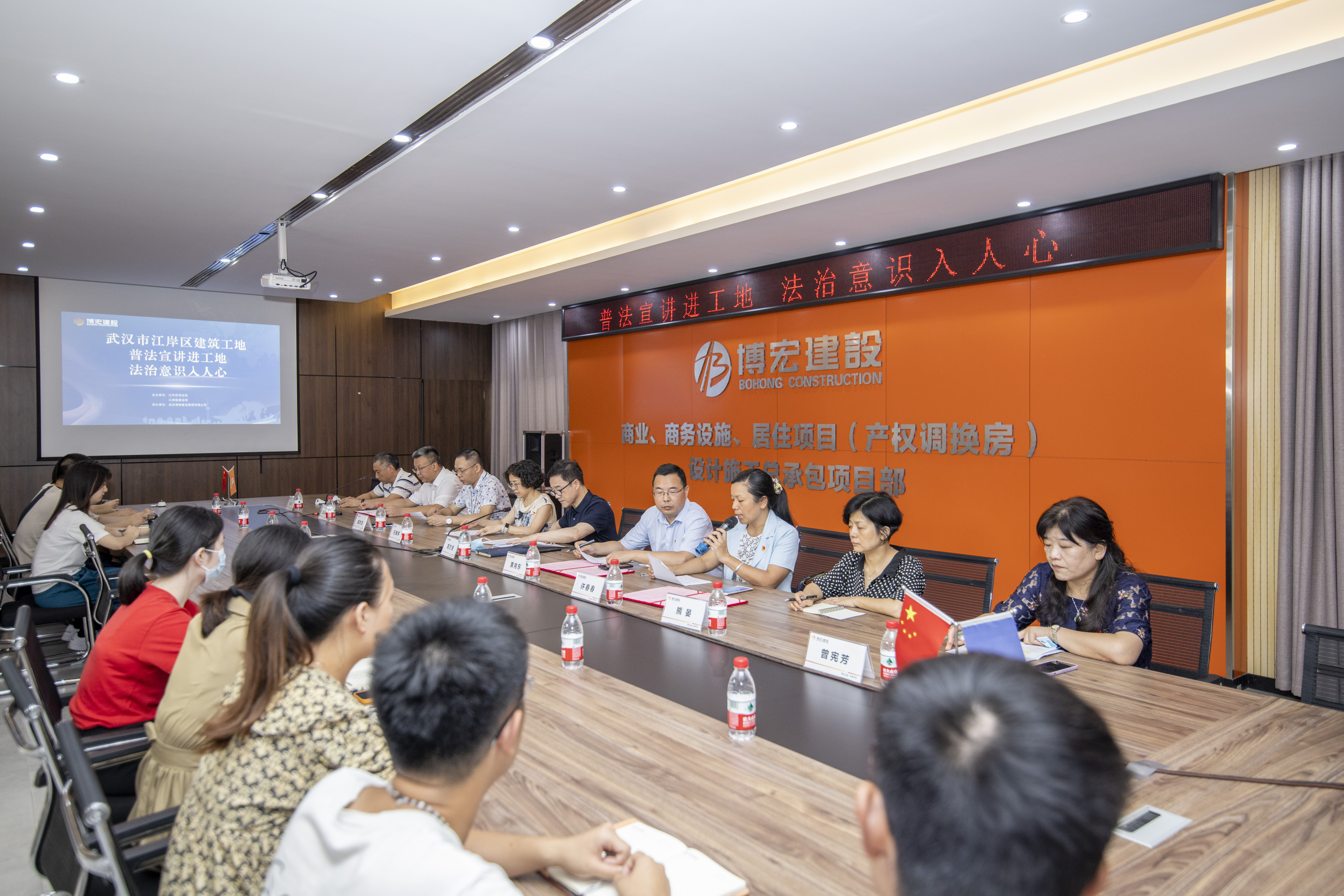 為切實保障建筑工人合法權益,提高各參建單位依法合規(guī)意識,樹立良好的法治觀念,7月7日上午,江岸區(qū)“普法宣講進工地,法治意識入人心”活動在博宏建設集團承建的商業(yè)、商務設施、居住項目(產(chǎn)權調換房)舉行。江岸區(qū)司法局黨組書記、局長周萬青,江岸區(qū)建設局黨委委員、副局長黃向東,江岸區(qū)建管站黨支部書記、站長王衛(wèi)綱等相關領導和相關專業(yè)律師參加了此次活動。活動采用線上線下相結合的方式,全區(qū)70余家項目工地、近2000名建筑工人線上觀看了直播。
