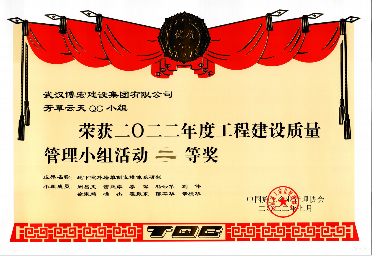 近年來,公司成立了多個(gè)QC小組,積極參與公司技術(shù)研發(fā)工作,以技術(shù)創(chuàng)新提升市場核心競爭力,努力打造新的增長極。目前,我司的QC小組課題始終堅(jiān)持問題導(dǎo)向原則,緊扣技術(shù)創(chuàng)新、施工生產(chǎn)、質(zhì)量管理等重點(diǎn)、難點(diǎn)問題,積極開展QC小組攻關(guān),并參與各級協(xié)會(huì)組織的QC競賽活動(dòng),獲得省I類成果9項(xiàng)、II類成果5項(xiàng)、III類成果4項(xiàng),其中1項(xiàng)成果榮獲武漢建筑業(yè)協(xié)會(huì)QC銀獎(jiǎng)。