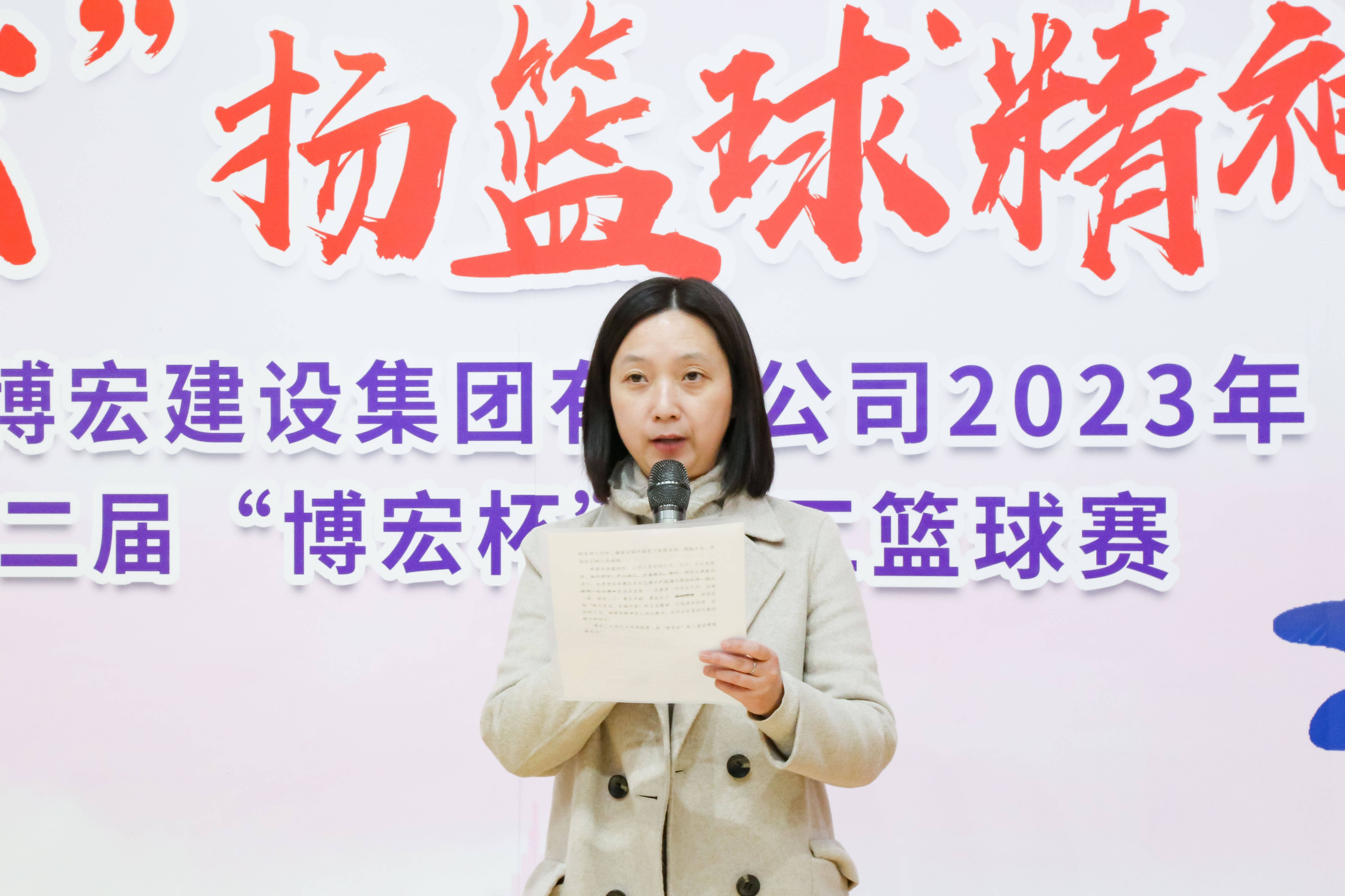 博宏建設(shè)集團(tuán)黨委副書記、工會(huì)主席郭一清為開幕式致辭。她希望全體運(yùn)動(dòng)員以此次比賽為契機(jī),外強(qiáng)體魄、內(nèi)修素養(yǎng),把頑強(qiáng)拼搏、勇攀高峰、精誠(chéng)團(tuán)結(jié)、永不言棄的籃球精神轉(zhuǎn)化為干事創(chuàng)業(yè)、攻堅(jiān)克難的不竭動(dòng)力,不忘初心、接續(xù)奮斗,以昂揚(yáng)向上、奮發(fā)有為的精神狀態(tài)為引領(lǐng),助推公司更好更快發(fā)展。最后她預(yù)祝本次籃球賽取得圓滿成功。