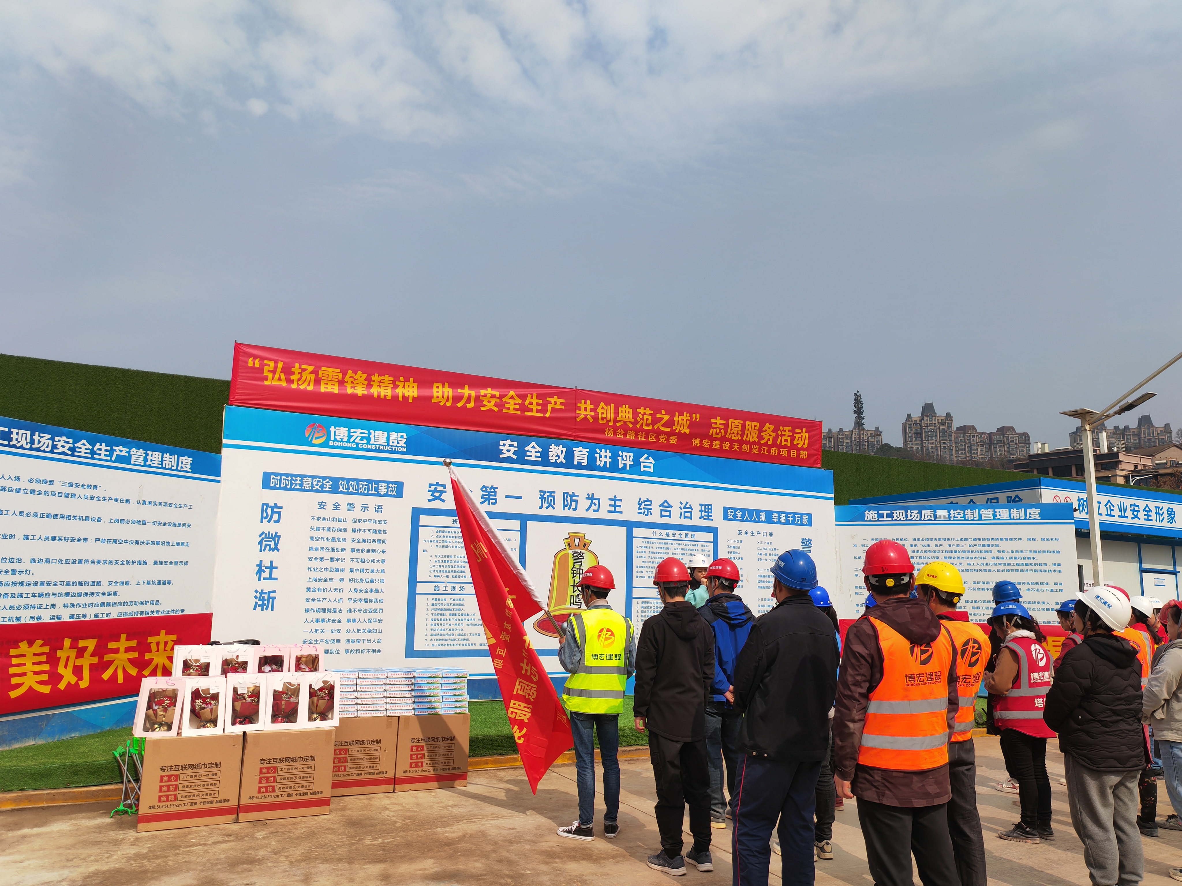 在第60個(gè)“學(xué)雷鋒紀(jì)念日”和“三八”女神節(jié)來臨之際,博宏建設(shè)集團(tuán)天創(chuàng)覽江府項(xiàng)目部聯(lián)合楊岔路社區(qū)黨委、楊帆志愿者服務(wù)中心開展“弘揚(yáng)雷鋒精神,助力安全生產(chǎn),共創(chuàng)典范之城”主題志愿服務(wù)活動(dòng),為堅(jiān)守在項(xiàng)目一線辛勤耕耘的城市建設(shè)者們提供多種多樣的便民服務(wù)及健康義診,30余名職工代表、農(nóng)民工代表、社區(qū)“守心”醫(yī)療志愿者參加活動(dòng)。