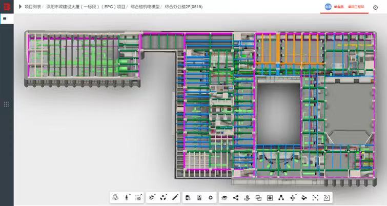 研究生期間彭迎研究的方向是BIM技術(shù)土建方向,但工作需要盡快上手的是BIM技術(shù)機(jī)電方向,一時(shí)讓她有點(diǎn)手足無(wú)措,“有問(wèn)題先嘗試解決,辦法總比困難多”踏實(shí)肯干的她選擇了迎難而上,白天她跟著師傅們不厭其煩地穿梭于現(xiàn)場(chǎng)的各個(gè)樓棟,在工作過(guò)程中多看、多問(wèn)、多記、多學(xué),晚上回到宿舍,她通過(guò)閱讀大量BIM機(jī)電方向相關(guān)書(shū)籍以及上網(wǎng)課等方式自學(xué)相關(guān)知識(shí),有時(shí)為了弄懂一個(gè)問(wèn)題常常奮戰(zhàn)到深夜。從入門(mén)到逐漸架構(gòu)起整個(gè)知識(shí)體系,彭迎經(jīng)歷了半年的時(shí)間。在自學(xué)期間,她遇到了很多困難和瓶頸,但因?yàn)闊釔?ài),從未想過(guò)放棄。“那段時(shí)間很累但是也很充實(shí),每天都能學(xué)習(xí)到新的東西,讓我對(duì)機(jī)電的了解越來(lái)越深入,也越發(fā)體會(huì)到了BIM的魅力??粗约豪L制的BIM圖紙粘貼在了施工墻上,工人按照?qǐng)D紙可以搭建出符合標(biāo)準(zhǔn)的砌體,心中的喜悅是無(wú)法用語(yǔ)言描述的。”回憶起那段時(shí)光時(shí),她臉上總是帶著微笑。理論上的認(rèn)真鉆研,現(xiàn)場(chǎng)中的建模實(shí)踐,彭迎的專(zhuān)業(yè)技術(shù)在不懈努力中愈見(jiàn)純熟,在負(fù)責(zé)總部大樓地上部分機(jī)電BIM工作過(guò)程中考取了BIM二級(jí)設(shè)備證,也和同事們一起獲得了多項(xiàng)國(guó)家級(jí)、省市級(jí)BIM獎(jiǎng)項(xiàng),熱愛(ài)與進(jìn)取讓她一次次品嘗到了成功的碩果。