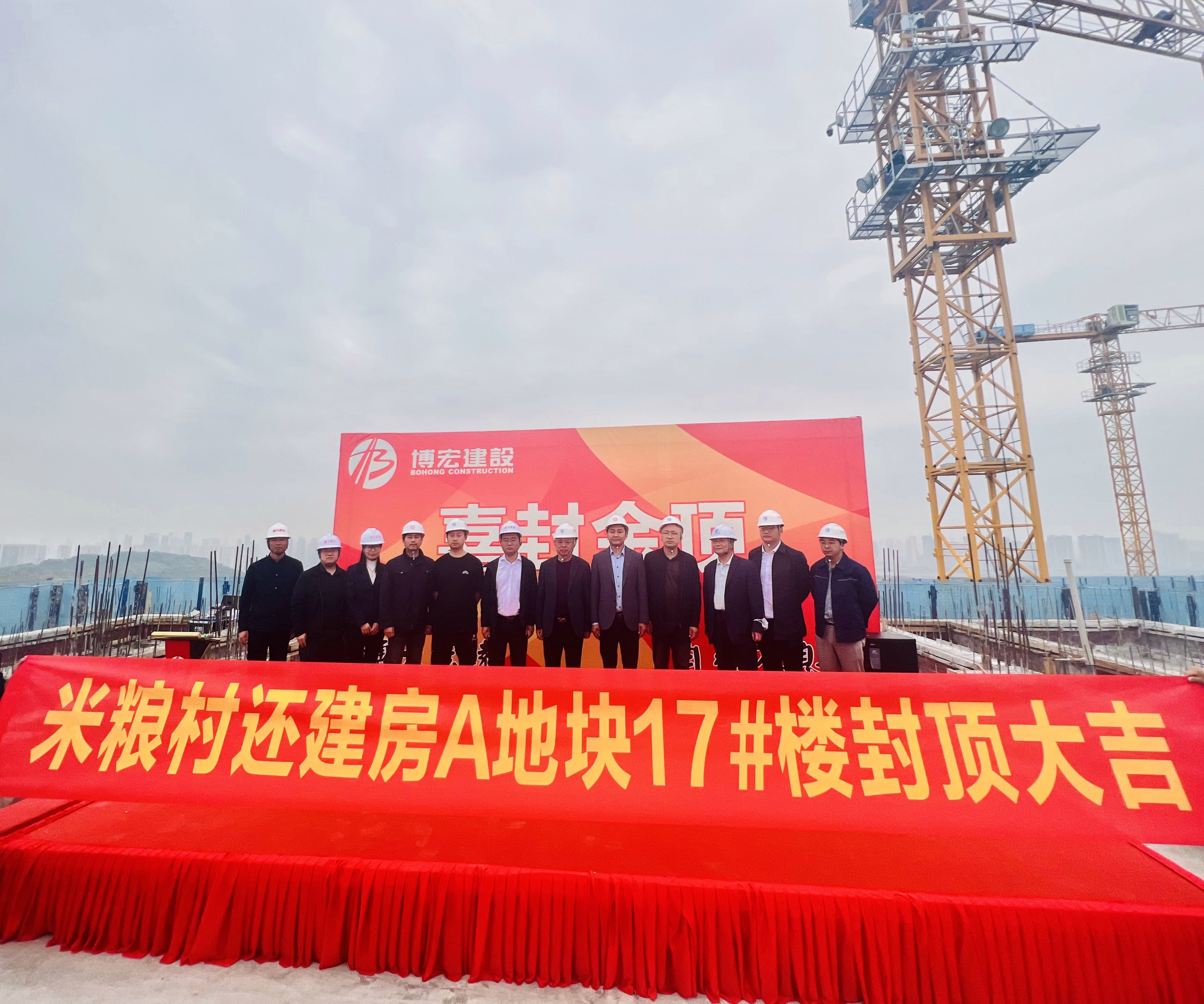4月28日上午10時,伴隨著最后一方混凝土澆筑到位,米糧村還建房A地塊17#樓主體結構順利封頂,提前15天完成該工期目標。博宏建設集團常務副總經(jīng)理奚雷及各參建單位代表出席此次封頂儀式共同見證這一重要時刻。